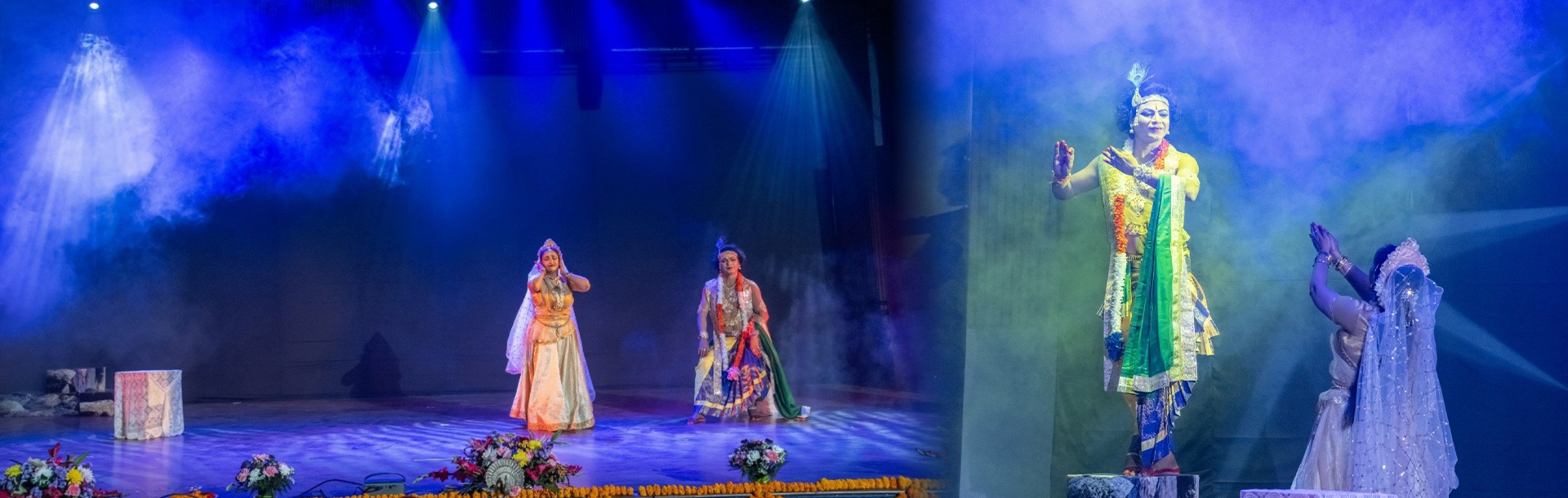 To mark the Inscription of Bhagwad Gita and Natyashastra to UNESCO MoW Int’l Register. Dharma Sthapana: Sri Krishna - Maharani Draupadi Samvada, a Kathak dance - drama presentation. A dialogue between Krishna and Draupadi, highlighting the events that lead to the Bhagwad Gita. Adapted from the writings on Draupadi by Neera Misra. Hindi adaptation by writer-poet, Akbar Mahfooz Alam Rizvi. Voice Artists: Madhumita Roy Khan (Draupadi), Abhinav Chaturvedi (Krishna). Dancers: Guru Sadananda Biswas and an ensemble cast of theatre artistes. Collab. Draupadi D’ Trust.