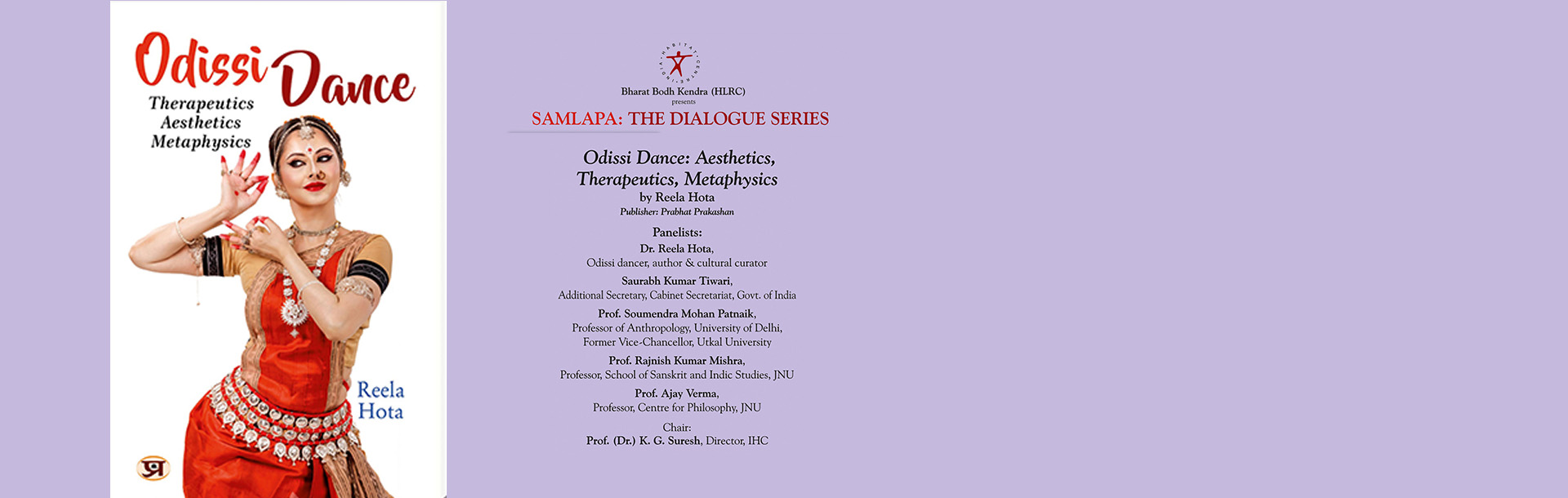 Samlapa: The Dialogue Series. Book discussion presented by the Bharat Bodh Kendra, Habitat Library and Research Centre. Odissi Dance: Aesthetics, Therapeutics, Metaphysics by Reela Hota. Published by Prabhat Prakashan. Panelists: Dr. Reela Hota, Odissi dancer, author & cultural curator; Saurabh Kumar Tiwari, Additional Secretary, Cabinet Secretariat, Government of India; Prof. Soumendra Mohan Patnaik, Professor of Anthropology, University of Delhi, former Vice-Chancellor, Utkal University; Prof. Rajnish Kumar Mishra, Professor, School of Sanskrit and Indic Studies, JNU, and Prof. Ajay Verma, Professor, Centre for Philosophy, JNU. Chair: Prof. (Dr.) K. G. Suresh, Director, IHC.