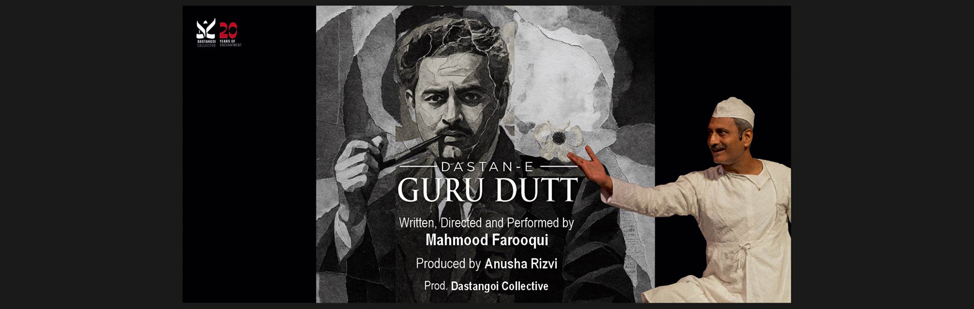 Dastan-e Guru Dutt (Hindustani/120 mins with interval) Written, Directed and Performed by Mahmood Farooqui. Produced by Anusha Rizvi. A Dastangoi presentation that places Guru Dutt amid the big four of the 1950s—Raj Kapoor, Bimal Roy, Guru Dutt, and Mehboob Khan—charting Bombay noir, its rain-lit streets, and the ache of homelessness as the city’s fatal music. It recalls P.C. Barua’s romantic modernity and the studio era of Himanshu Rai and V. Shantaram, showing how systems forged auteurs. It walks with Balraj Sahni, K. A. Abbas, Indian People's Theatre Association, and the Progressive Writers' Association, where people’s theatre soldered politics to popular feeling. It holds, in one breath, Geeta Roy’s asphyxiation, Waheeda Rehman’s ascent, and Guru’s fracturing intimacies. It sings Sahir, S. D. Burman, Majrooh, and Naushad, where the Hindi film lyric minted a new, durable modernity of love. It converses with Ghatak and Ray, widening cinema’s grief and grace. Prod. Dastangoi Collective. Tickets at Rs.500, Rs.350 & Rs.200 are available online on bookmyshow.com and at the Habitat Programmes desk.