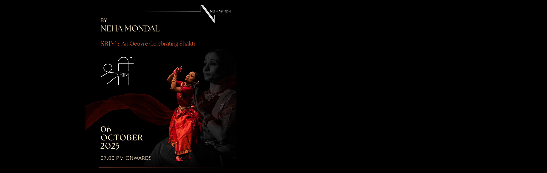 Srim: Celebrating The Divine Feminine by Neha Mondal. An oeuvre of some traditional & original compositions, that explore the idea of ‘Devi’ as Sarvagnyam (the Omnipresent). The Margam explores these hues through invoking primordial energies, and celebrating ‘Shakti’ as Meenakshi, Radha and Kali.