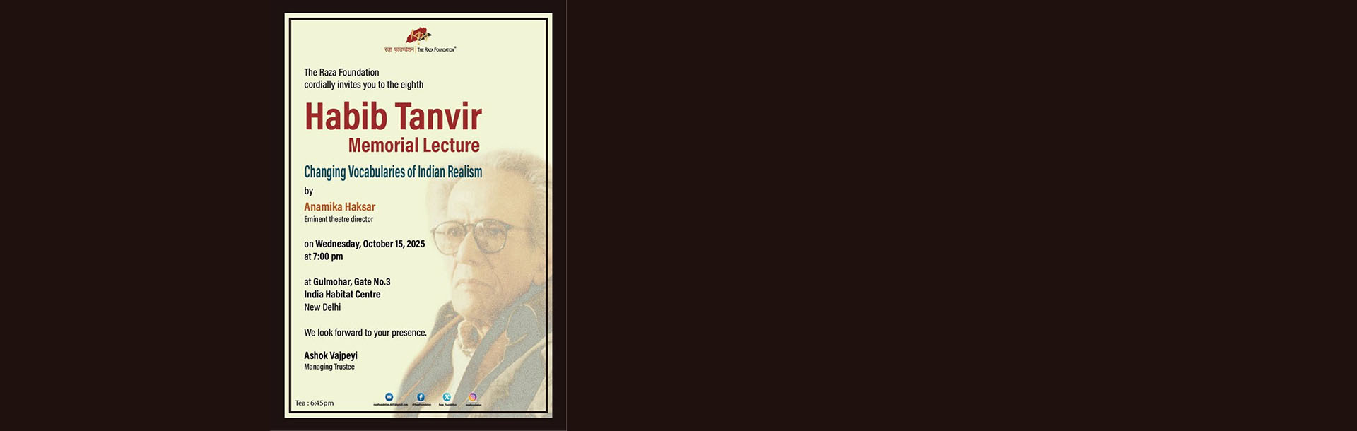 Habib Tanvir Memorial Lecture. Changing Vocabularies of Indian Realism by Anamika Haksar. Collab. The Raza Foundation.