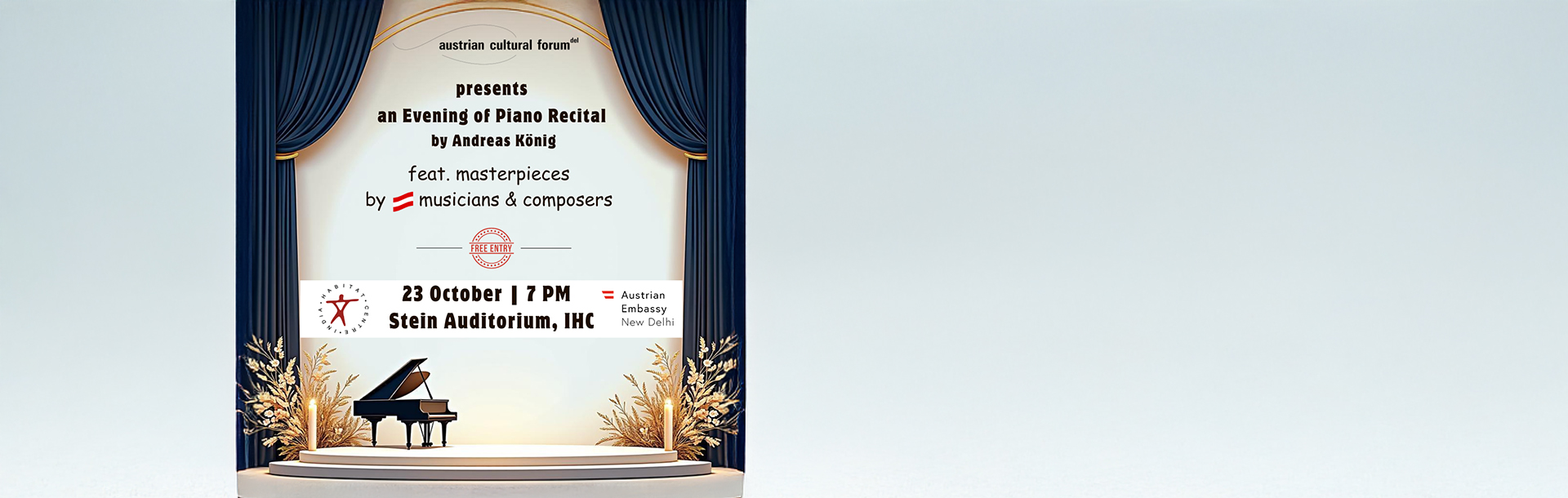 Piano recital by Andreas König, featuring select pieces by Mozart, Liszt, Bruckner, Beethoven, and a tribute to the 200th anniversary of Johann Strauß. Collab. Austrian Cultural Forum of the Austrian Embassy New Delhi.