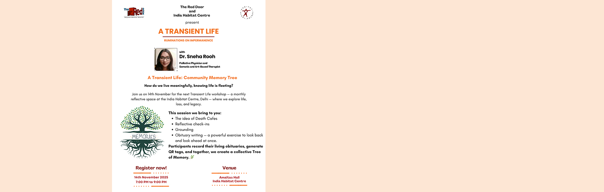 A Transient Life. Reflect on mortality, discover Death Cafes, and record your own living obituary as part of our interactive community memory tree. Collab. The Red Door.