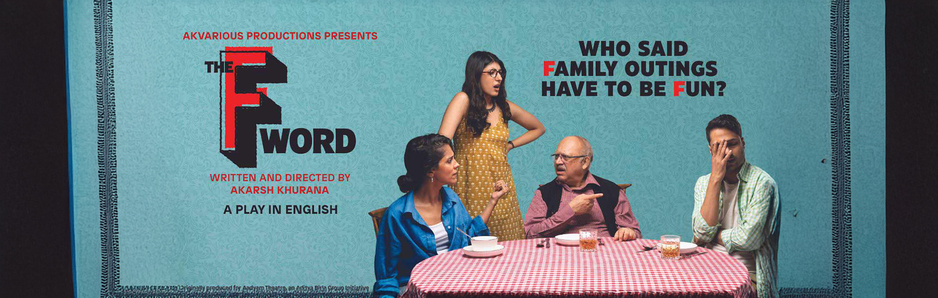 The F Word (English/ 80 mins). Wri. & Dir. Akarsh Khurana. Produced by Saatvika Kantamneni. Cast. Akash Khurana, Malaika Choudhury, Siddharth Kumar, Garima Yajnik. Originally produced for Aadyam Theatre, an Aditya Birla Group Initiative. Chetan, a high school teacher, is forced to meet up with his estranged sister Unnati, a psychologist, when their parents’ caretaker gives them disturbing news. They take their father out to lunch at his favourite restaurant, hoping to get a clearer picture of the situation. It has been years since they’ve had a serious conversation, so a hilarious attempt follows, which opens up a can of worms, and all the family secrets that have been brushed under that carpet rear their ugly head. As their father confronts the indignities of age, and Chetan and Unnati grapple with their own losses and disappointments, the play takes a darkly comic but poignant look at the relationships we take for granted, and how we often hurt the people we love the most. Prod. Akvarious Productions. Tickets at Rs. 500, Rs.350 & Rs.200 are available online on bookmyshow.com and at the Habitat Programmes desk.