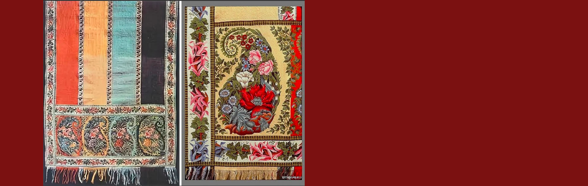 The Kashmir Shawl and how it influenced Russian Shawls by Olga Lystsova, art historian. An illustrated talk on the classical Kashmir shawls and its Russian imitations, which adapted the Boteh/Paisley motif with more realistic garden flowers and brighter colour palettes, while retaining the traditional Indian borders and medallions with distinct Russian symmetry, and how the Kashmir motifs were integrated into the 19th-century Russian costume.