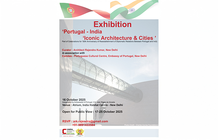Portugal & India: Iconic Architecture and Cities India and Portugal’s relations in architecture date back to the XVI century. Historically, Portugal and India have been allies and have solid traditions of cultural and artistic exchanges valuable legacy for contemporary architecture and to be transmitted to future generations. Much of the early Portuguese architecture in India is manifested in churches, cathedrals and schools. Western India, especially Goa, Daman and Diu, have seen the great influence of some of the Portuguese architecture today and have emerged with iconic architecture of the region. The exhibition being curated by Architect, Rajendra Kumar in association with Embassy of Portugal, New Delhi is part of celebration about ‘50th Year of Diplomatic Years of India-Portugal’ explores the context of architectural marvels in Portugal and India, tracing the visionary efforts of architects like Alvaro Siza, Eduardo Souto De Moura, Fernando Tavora, Camilo Rebello, Manuel Aires Mateus, Nuno Valentim, Charles Correa, Raj Rewal, Bimal Patel (HCP), Hafeez Contractor and other prominent architects, designers of India and Portugal. It highlights the parallels between these two great nation’s celebrated achievements, their adaptation to evolving needs, and their iconic status as beacons of modernist innovation.